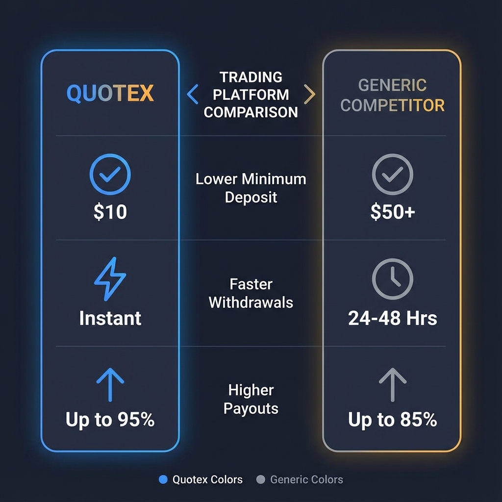 - Quotex: Starts at $10. This makes it much more accessible for beginners who want to test the waters with real money.